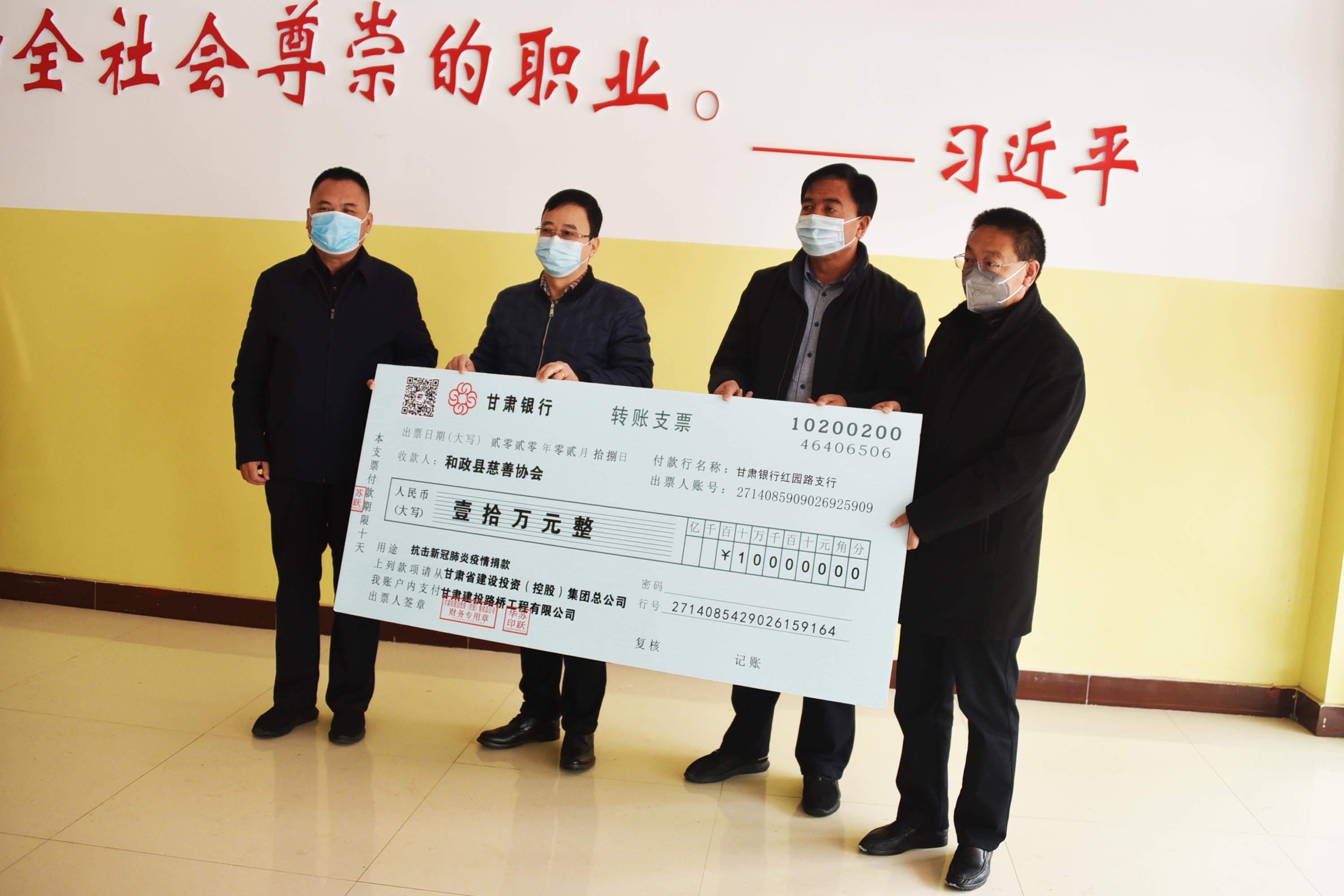 众志成城 抗击疫情 甘肃建投路桥公司向和政县捐款10万元!
