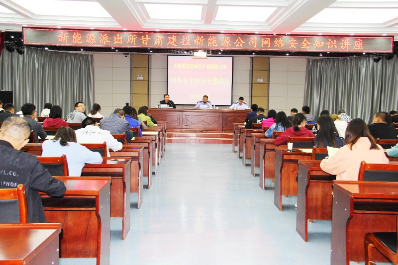9月21日,新能源公司举办网络安全知识专题讲座和法制教育,邀请武威市公安局凉州分局新能源园区派出所所长贾中智、副所长柴军海围绕电信诈骗的特点、常见形式及补救措施等方面为新能源公司干部职工讲授防范网络电信诈骗知识,将理论知识与实际案例相结合,通过案例讲理论,新能源公司干部职工仔细聆听、认真记录。同时,在网络安全宣传周期间,新能源公司还举办了网络安全走一线、网络安全警示教育等系列活动。