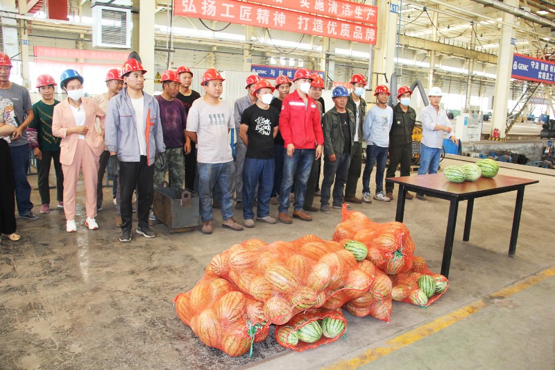 慰问中,新能源公司总经理赵琰森、工会主席唐宾军向车间一线工人送去西瓜、绿豆汤等慰问品,并叮嘱大家在坚守岗位的同时要注意身体健康、安排好作息时间,一如既往地发挥“不怕苦不怕累”精神,满怀激情、铆足干劲,以健康的体魄、顽强的斗志投身到下半年工作中,为新能源公司发展贡献力量。