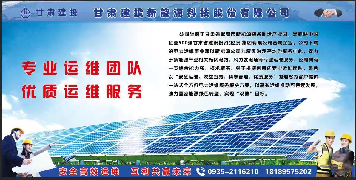 2022年6月9日,甘肃建投新能源科技股份有限公司所属的电力运维事业部在凉州区九墩滩甘肃建投全国荒漠化防治(机械治沙工程)试验示范基地举行了揭牌仪式,新能源公司总经理赵琰森、副总经理、电力运维事业部总经理张卓牙出席了揭牌仪式。揭牌仪式的顺利完成代表着电力运维事业部开始正式运行。
