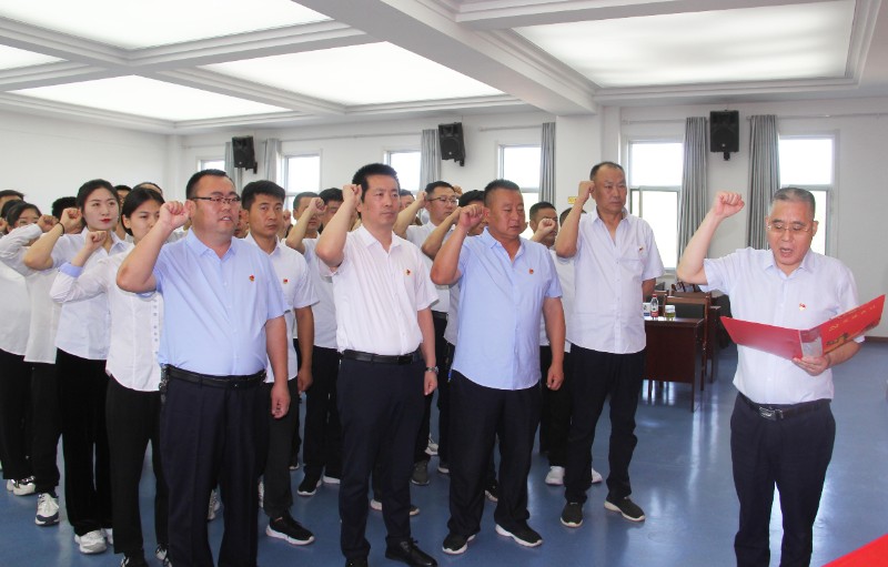 6月30日上午,庆祝活动在激昂的国歌声中拉开了序幕,全体参会人员肃立,以饱满的精神状态齐唱国歌。“我志愿加入中国共产党,拥护党的纲领,遵守党的章程,履行党员义务......”全体党员列队,面对鲜艳的党旗,由新能源公司党支部书记、董事长马有胜同志领誓,重温入党誓词。铮铮誓言代表了每一位党员忠诚奉献、严于律己。