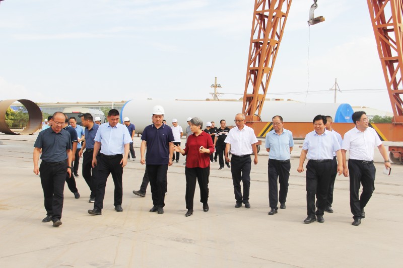 马秀兰一行在深入金宝慱亚洲体育风电设备事业部、新能源装备产业基地建设项目时,充分肯定了新能源公司目前取得的成绩。她指出,新能源公司要继续拓展发展思路,不断做大品牌、做强企业,打造产业示范基地,并向随行部门领导安排,要协调、解决关于项目建设手续办理的进度情况、光伏指标申报情况及用水困难的问题。