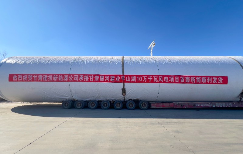 1月16日,由甘肃建投新能源科技股份有限公司承制的甘肃黑河建业平山湖10万千瓦风电项目首套塔筒顺利发货!