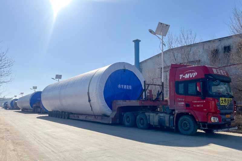 金宝慱亚洲体育甘肃黑河建业平山湖10万千瓦风电项目首套塔筒顺利发货!