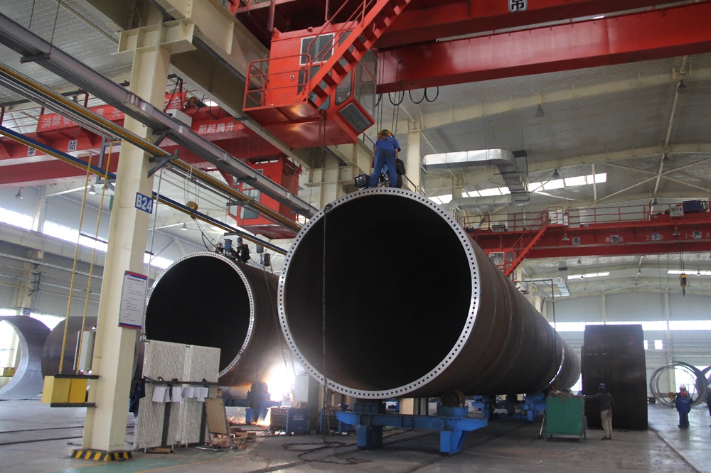 风电设备事业部迅速组建技术攻坚团队,深入开展技术攻关,成功构建“工艺设计→方案落地→图纸执行→现场纠偏”完整技术链条,开展了《风电塔筒不同厚度母材焊工艺的研究与应用》《一种新型风电塔筒卷制应用技术》等项目的研究,实现技术方案的全面转化,攻克多项生产技术工艺难题。