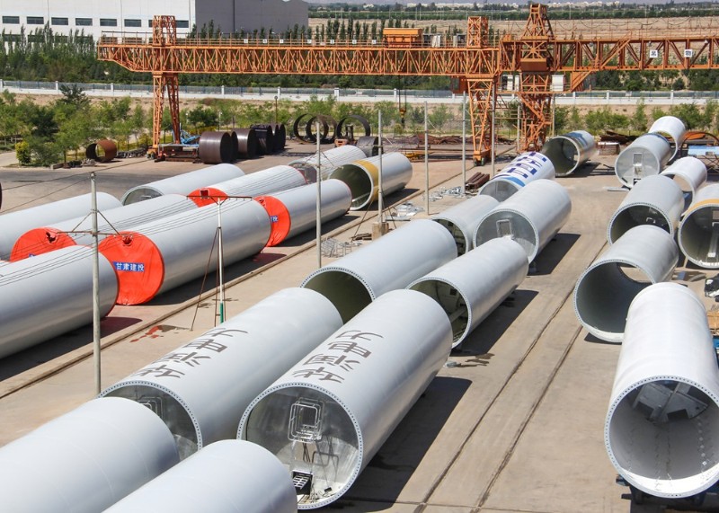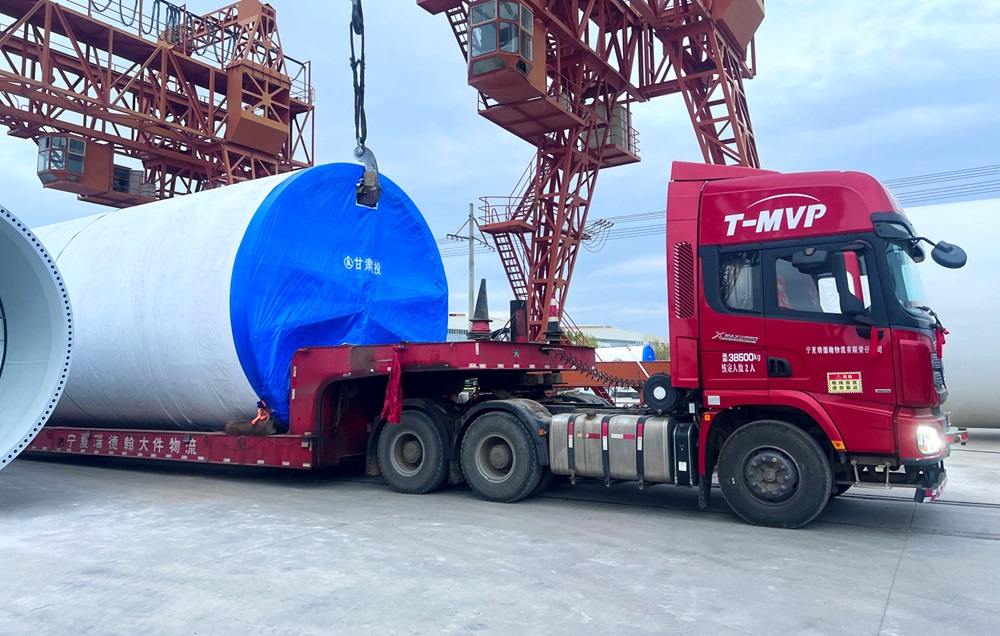 金风科技甘肃张掖临泽30万千瓦风电项目塔筒装车