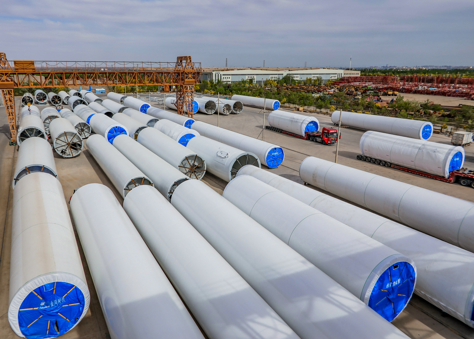新能源公司完工塔筒堆场