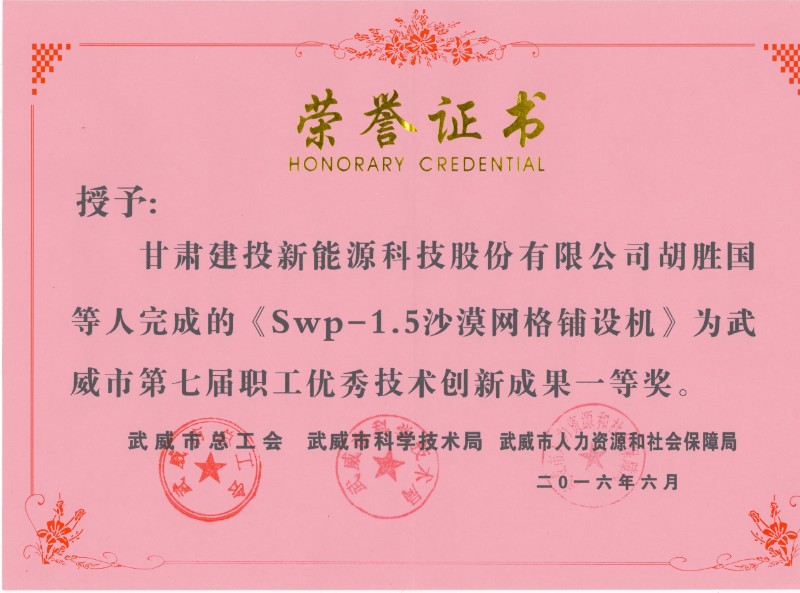 Swp-1.5沙漠网格铺设机-武威市第七届职工优秀技术创新成果一等奖