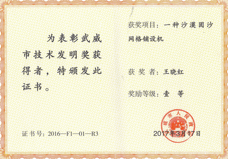 一种沙漠固沙网格铺设机-获奖者:王晓红