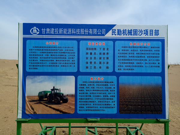 (本报武威讯:牟 瑞)对绿色梦想的矢志追逐,改变了腾格里亘古行走的轨迹;一枝一叶的积累,完成了对这里地貌的重塑和再造。在这个季节,建投人已然在铆劲儿前行。甘肃建投新能源科技股份有限公司机械固沙三个项目部三箭齐发,驻进腾格里沙漠南缘,分别在武威市的凉州区、民勤县、古浪县开展机械铺设草方格固沙工作,成为千里沙漠林大带里的“职业沙手”。