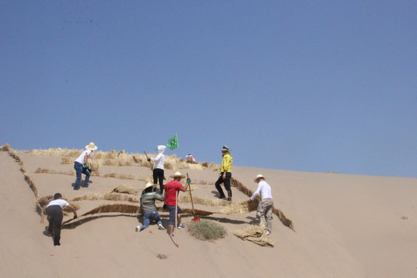 在沙漠基地员工的带领帮助下,新员工们完成了90分钟的人工固沙作业,并现场参观了机械固沙作业。通过实践,大家一致认识到了机械固沙的快捷性与高效性;对公司的治沙产业感到尤为自豪,更为身为建投人而骄傲。