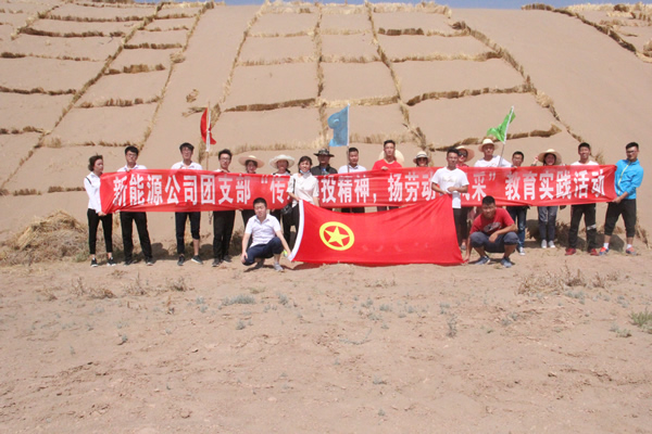 2018年7月31日,新能源公司团支部举行的以“传承建投精神,扬劳动者风采”为主题的新员工素质拓展训练在公司沙漠基地进行。此次活动旨在通过理论学习、实践活动,使新员工充分了解公司治沙产业的发展,了解荒漠化治理的重要性、认识沙漠化的危害;同时希望通过此次素质拓展训练,增进新员工间的了解,消除陌生感,快速融入新能源公司这个大家庭中。