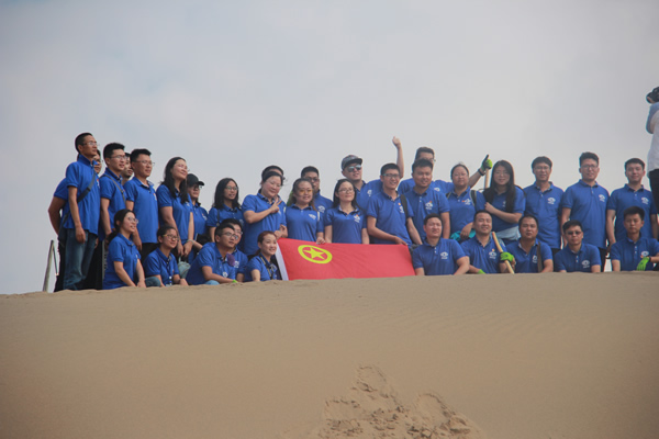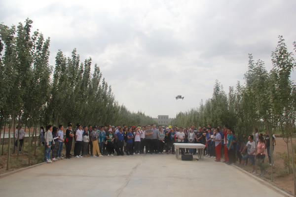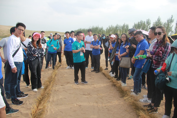 28日早上,参加“贡献杯”联赛的200余名青年代表离开兰州,一路向西,穿过乌鞘岭隧道,来到位于武威市的甘肃建投新能源科技股份有限公司全国荒漠化防治(机械治沙工程)实验示范基地进行观摩。在基地通过观看企业介绍宣传片、参观沙产业展馆、观摩无人机实时采集沙漠信息,亲身体验人工铺设草方格沙障、现场观看固沙机作业演示等一系列活动,青年代表们对新能源公司的机械化防沙治沙有了一定的了解。尤其是在参与了人工治沙活动看到机械铺设草方格演示后,青年代表们纷纷表示“用机器铺不用再挖沟填埋草帘子了,减少了人工劳力,铺设的很快也很结实”。对来自八省区青年代表提出的问题现场的技术员对其进行了一一讲解,让他们进一步了解机械化治沙。晚上举行的篝火晚会进一步拉进了八省区青年代表之间的距离,互相交流学习,举杯畅饮,围圈起舞。烟花表演将晚会推向高潮,绚丽多彩的烟花引得青年欢呼声此起彼伏,治沙基地的工作人员也是给来自八省区的青年们带来不断的惊喜,让青年们感受到新能源公司的热情和烟花下腾格里沙漠的壮美。在基地全体员工的精心准备和组织下,此次晚会活动圆满完成。