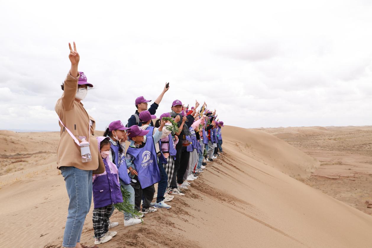在沙漠徒步活动里,孩子们通过学习辨别沙生植物,捕捉沙生动物,学习沙漠求生技能等研学课程,进一步了解了沙漠的由来和危害,懂得了治沙的意义与目的。