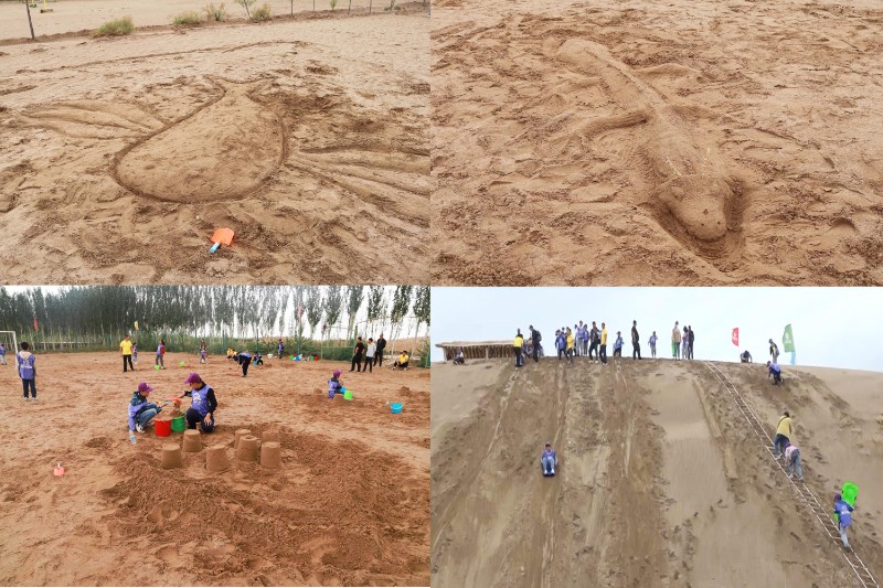 与此同时,制作沙堡、踢沙漠足球等游戏也在阳光运动场如火如荼的进行,孩子们脸上洋溢着灿烂的笑容,尽显朝气与活力。