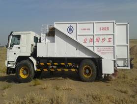 机械固沙是在传统治沙理论基础上,遵循因地制宜,因害设防,由近及远,先易后难的原则,利用现代化的机械工程手段,将草沙障固沙技术与现代装备技术相结合,利用固沙装备将稻草、麦秸等植物茎杆在沙漠表面铺设成不同形式的草沙障,由于大大增加了沙漠表面的粗糙度,消减风力,阻止流沙移动,截流雨水,防风固沙作用非常明显,比人工固沙的质量要高、固沙效果更好。