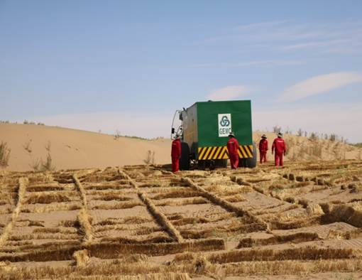 2017年3月,基地在民勤、古浪以及武威市凉州区沙漠地段开展千里沙漠大林带机械固沙项目。通过机械固沙,防风固沙、封沙育林(草)、造林绿化等,使辖区沙漠化得以遏制、生物多样性进一步丰富,改善小气候,使当地的生态环境步入良性循环。